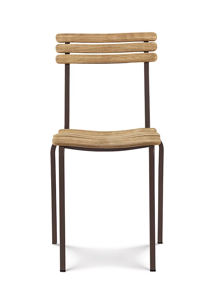 Der Stuhl Laren ist ein typischer Vertreter mediterraner Leichtigkeit. Er wartet mit einem filigranen Gestell sowie einer aus Teak gefertigten Lehne und Sitzfläche auf. Schwankungen der Temperatur und der Luftfeuchtigkeit sowie Wasser und auch Salzwasser können dem resistenten Teak nichts anhaben.