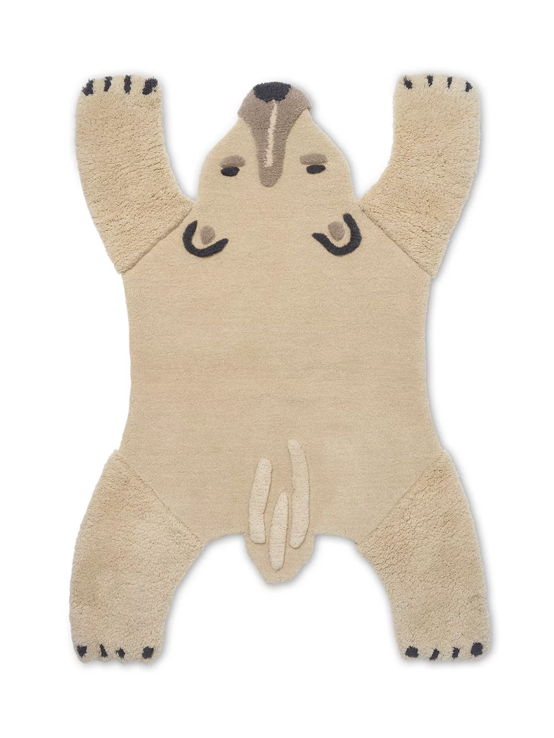 Der flauschige Teppich Polar Bear bietet den Kleinen im Kinderzimmer die Silhouette eines Eisbären zum Begreifen und Bespielen. Der handgetuftete Teppich wartet mit kontrastierenden Schlingen auf, die als sensorisches Element das Spiel bereichern. Der Teppich funktioniert auch als wunderschöner Wandbehang!