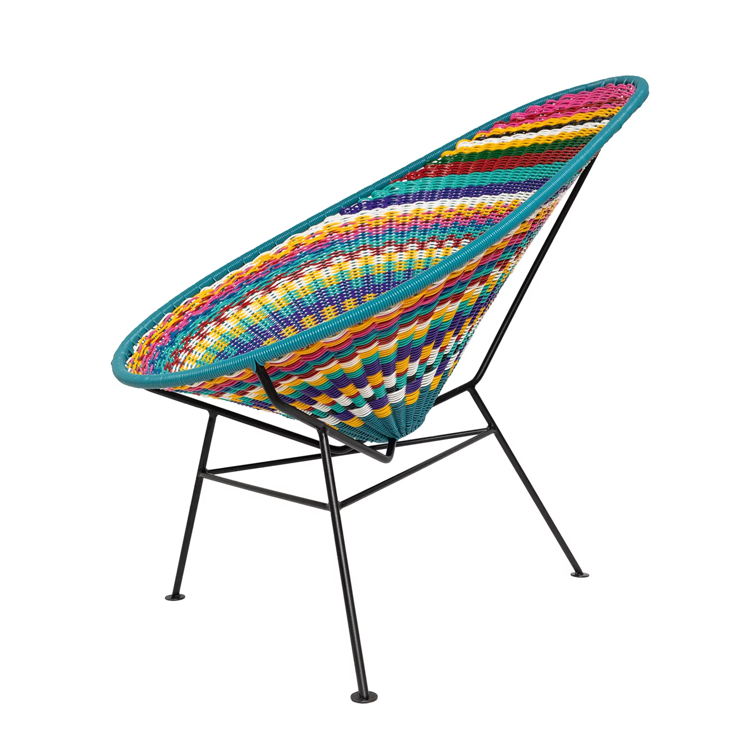 Mit dem Oaxaca Chair zieht mexikanische Farbenpracht bei Ihnen ein. Der Stuhl mit solider Flechtstruktur ist von der gleichnamigen Region Mexikos inspiriert – ein Hingucker, der gute Laune macht. Farbgebung und Muster spiegeln die Lebensart des Bundesstaats Oaxaca wider, der wie kein anderer für den eklektischen Stil Mexikos steht. Die ergonomische Sitzschale im bunten Farbenmix passt sich der Form des Körpers an. Mit dem handgefertigten, UV-beständigen und schadstofffreien Geflecht aus elastischem Kunststoff ist der Oaxaca Chair sowohl in- als auch outdoor-tauglich.