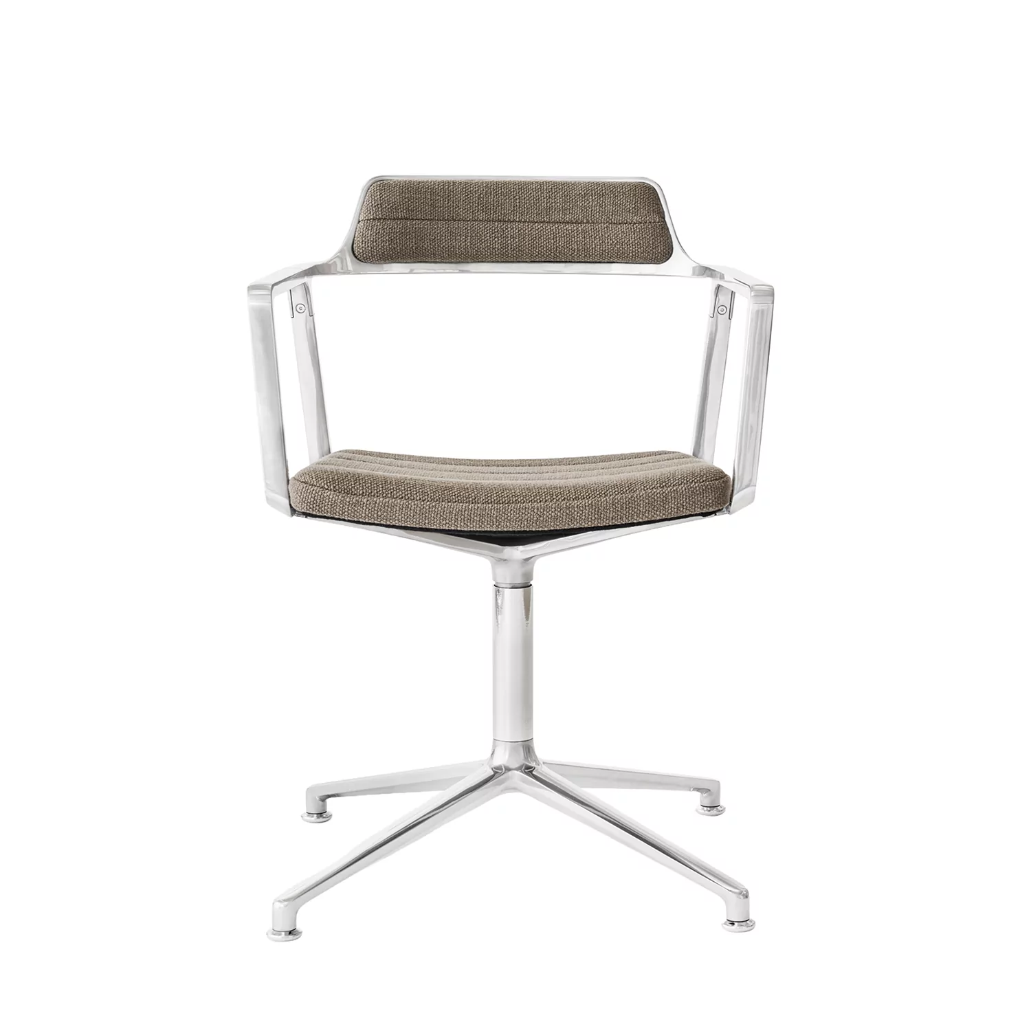 Hochglanzpoliertes Aluminium kontrastiert einen höchst komfortablen, überwiegend aus Naturmaterialien gefertigten Bezugsstoff. Das macht den Drehstuhl Vipp 452 zum elegant charmanten Wohlfühlfavoriten, auf dem Sie einen 360º-Rundumblick genießen können. Solide Komponenten bilden ein leicht wirkendes Design und bieten Sitzgenuss vom Feinsten!